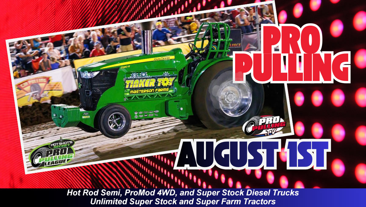 Pro Pulling League is back for more Red, White, & BOOM! Five divisions of truck & tractor pulling action, plus Fly the Flag parade and fireworks finale!